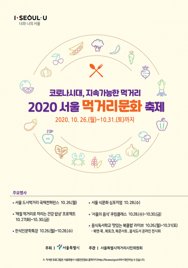 [충청뉴스큐] 서울시는 ‘2020 서울 먹거리 문화축제’를 오는 26일부터 31일까지 6일간 온라인으로 진행, 코로나19에도 많은 시민이 참여할 수 있도록 비대면 방식으로 실시간 개최한다.