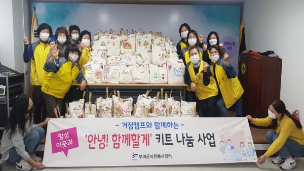 [충청뉴스큐] 부여군자원봉사센터는 지난 21일 코로나19의 장기화로 인해 어려움을 겪고 있는 관내 소외계층 어르신들을 위해 ‘안녕 함께할게’키트 300개를 제작·배부 봉사활동을 실시했다.