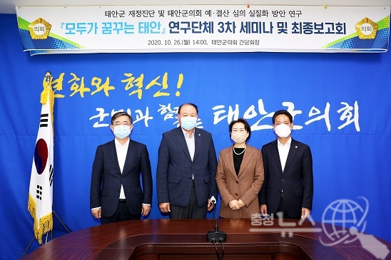태안군의회 의원연구단체 『모두가 꿈꾸는 태안』(대표 김종욱 의원)이 지난 26일 태안군의회 예결산 심의 실질화 방안 마련을 주제로 한 연구용역 최종보고회를 개최해 관심을 끌었다.