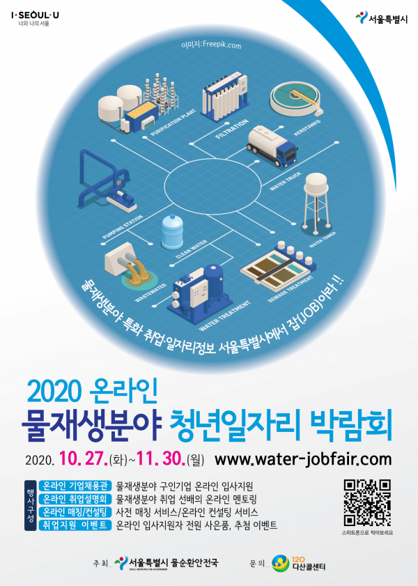 [충청뉴스큐] 서울시가 토목, 환경 등 물재생 분야에 취업을 희망하는 청년과 기업을 연결해주는 ‘제3회 물재생분야 청년일자리 박람회’를 10.27~11.30 온라인으로 개최한다.