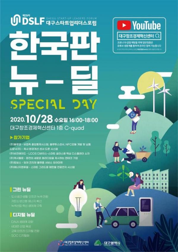 [충청뉴스큐] 대구시는 오는 28일 대구창조경제혁신센터에서 지역의 대표 투자유치설명회인 ‘대구스타트업 리더스포럼’을 개최한다.