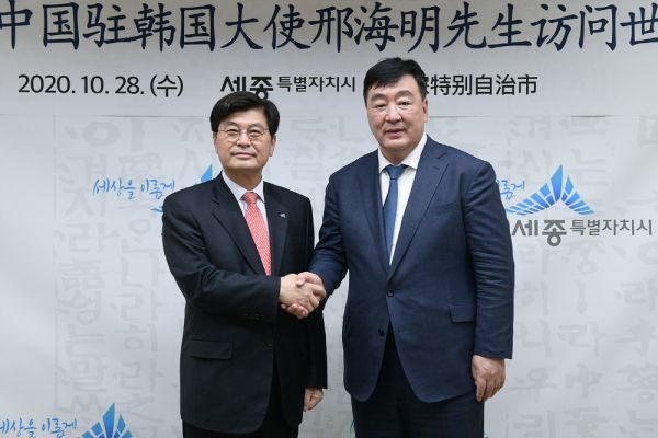 [충청뉴스큐] 이춘희 세종특별자치시장이 28일 시청에서 싱하이밍 주한 중국대사와 만나 양국 지방정부 간 교류 확대를 통한 새로운 협력 모델 발굴에 힘을 모으기로 했다.