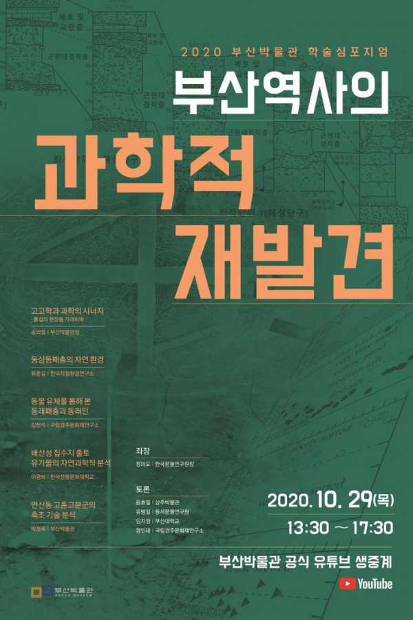 [충청뉴스큐] 부산시 시립박물관은 10월 29일 오후 1시 30분에 학술심포지엄 ‘부산역사의 과학적 재발견’을 온라인으로 개최한다고 밝혔다.