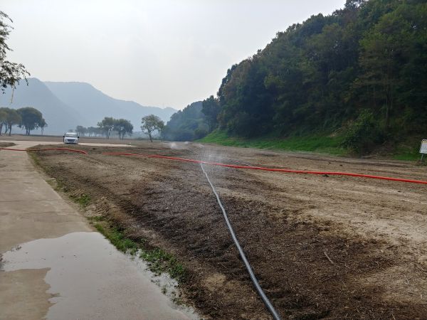 이번 작업에서 동이면 행정복지센터의 협조를 얻어 약83,000㎡ 이르는 유채꽃 단지에 양수기에 점적호스 3,600m를 설치했다.
