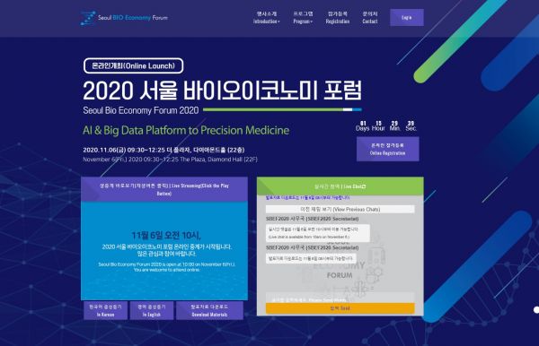 2020 서울바이오이코노미포럼은 ‘AI & Big Data Platform to Precision Medicine’을 주제로 온라인, 오프라인을 병행해 개최된다.