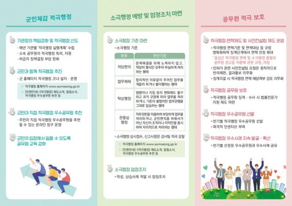 군은 주민이 체감할 수 있는 성과를 창출하기 위해 혁신도시 정주 여건 개선과제와 기업애로 개선과제를 중점과제로 선정하고 2020년 음성군 적극 행정 실행계획에 반영했다.