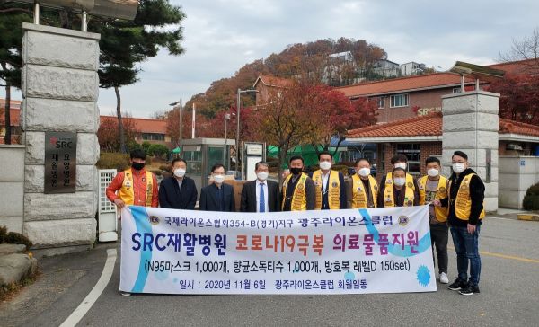 [충청뉴스큐] 광주라이온스클럽은 지난 6일 SRC재활병원을 방문해 800만원 상당의 방역위생 물품을 전달했다.