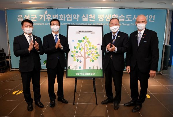 반기문 위원장은 축사를 통해 “기후변화협약을 지키지 않으면 우리는 지구 온난화로 인한 이상 기온과 집중호우, 심각한 미세먼지, 각종 전염병 등을 더 심하게 겪게 될 것”이라며 “위기를 알아야 대응할 수 있는 만큼 평생학습을 통해 주민 모두가 기후변화협약을 생활 속에서 실천한다면, 음성군이 전 세계의 참여를 이끌어가는 선도적인 마중물이자 2050년 탄소 중립 실현의 기반이 될 수 있을 것으로 기대한다”고 밝혔다.