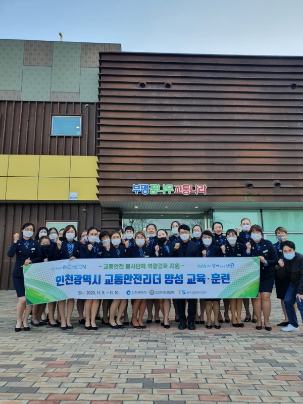 [충청뉴스큐] 인천광역시는 지난 11월 9일부터 이틀에 걸쳐 인천지방경찰청과 한국교통안전공단, 도로교통공단와 협력해 교통안전 봉사단체인 ‘인천광역시 녹색어머니연합회’회원 22명을 대상으로 어린이 교통안전 교육을 담당하는 시민교육인력 양성 교육·훈련 프로그램을 운영해 "교통안전리더"를 배출했다고 밝혔다.