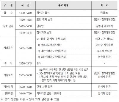 서울시50플러스재단은 일회성이 아닌, 지속적인 네트워크 구축을 위해 향후 정기 포럼을 기획하여 운영할 예정이다.