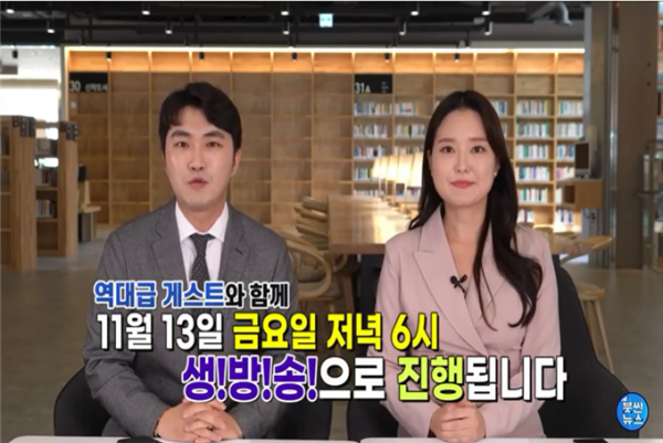 [충청뉴스큐] “오늘도 교양있는 사람들이 두루 쓰는 현대 부산말로 부산 소식을 음층시리 전해 드리겠습니다” 부산 사투리로 뉴스를 진행해 화제를 모은 뉴스 코너 ‘붓싼뉴스’가 50회를 맞아 특집 생방송을 진행한다.