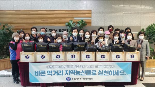 [충청뉴스큐] 한국생활개선대전광역시연합회는 17일 오후 대전시농업기술센터에서 대전여성단체협의회에 농산물 꾸러미 300개를 전달했다.