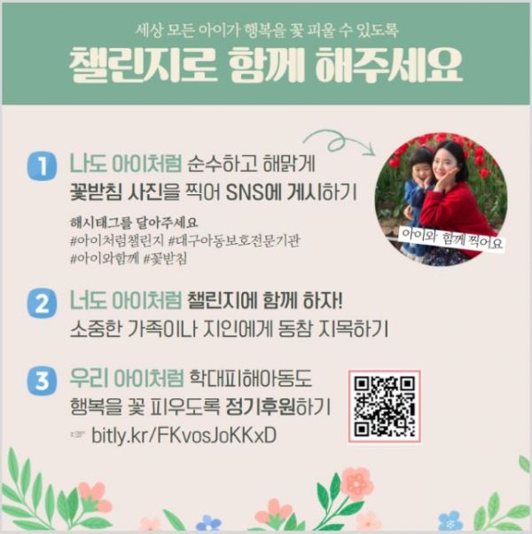 ‘아동학대 예방의 날’이 2012년 아동복지법에 처음으로 명시된 이후 대구시는 매년 캠페인, 세미나 등 대면 홍보 위주의 아동학대예방 활동을 펼쳐왔으나, 올해는 코로나19 상황에 따라 대면 홍보와 비대면 홍보를 병행해 추진한다.