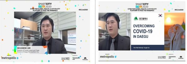 대구시는 2번의 세션에서 대구의 성공적 방역과 대응정책에 대해 약 10분간 소개했으며 스페인 바로셀로나, 마드리드, 네덜란드 암스테르담, 핀란드 헬싱키 등의 도시들도 함께 세션에 참가했다.