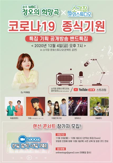 이에 따라 광주시는 공연자와 관객이 함께 공감하며 즐길 수 있도록 광주MBC라디오와 공동으로 12월4일 오후 7기 소각장 문화스튜디오에서 비대면 온라인 방식의 공연을 선보인다.