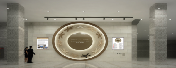 이 조형물은 한국과 아세안 10개국의 대표적인 나무로 사람의 형상을 조각한 것으로 회의의 핵심가치인 ‘평화를 향한 동행, 모두를 위한 번영’을 의미한다.