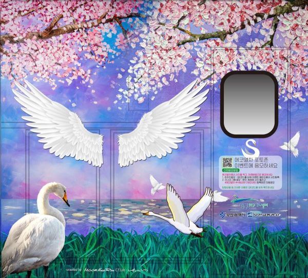 특히 열차 내 포토존은 우리가 겨울 철새가 되어 힘차게 날아올라 희망의 봄을 맞이하는 낙동강하구를 표현한 것으로 코로나바이러스감염증-19 극복 의지를 담고 있다.