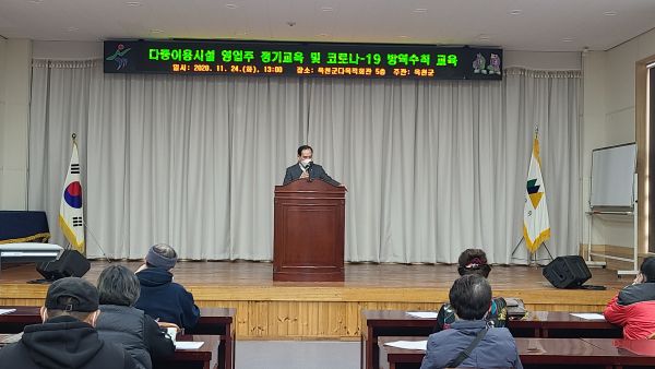[충청뉴스큐] 옥천군은 지난 24일 오후 다목적회관에서 노래연습장 및 게임제공업소 영업주 30여명을 대상으로‘코로나19 핵심방역 수칙’과 ‘2020년 다중이용시설 영업주 정기교육’교육을 실시했다.