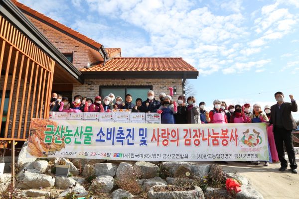 한국여성농업인금산군연합회와 한국농업경영인금산군연합회는 같은 날 사랑의 김장나눔 봉사를 통해 만든 김치 90박스를 군청 주민복지실을 통해 10개 읍·면에 전달했다.