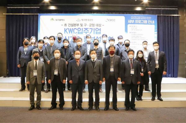 [충청뉴스큐] 대구환경공단은 기업이 보유한 환경신기술·제품을 소개하고 현장과의 정보공유를 통한 기술개발 수요발굴로 내수판매를 활성화해 코로나19 재확산 및 장기화에 따른 기업 경영활동의 어려움을 해소하고자 지난 11월 27일 대구 호텔라온제나에서 건설본부 및 구청, 팔공산자연공원 관리사무소 실무자를 대상으로 ‘KWC입주기업 환경신기술 홍보설명회’를 개최했다.