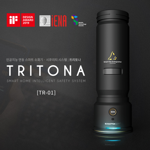 혁신시제품인 ㈜샤픈고트의 ‘트리토나’는 인공지능으로 위급 상황을 감지하고 열 감지 센서로 정밀히 화재를 인지해 구조신호를 보내고 화재를 진압할 수 있는 제품이다.