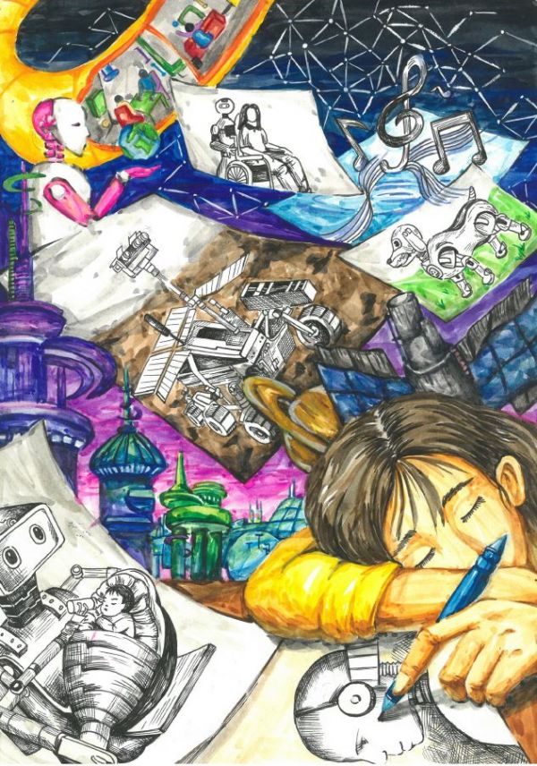 미술대회 최고상인 과학기술정보통신부 장관상을 받은 대전 대덕초 6학년 이채령양의 ‘사람을 위한 기계, 로봇’ 작품과 대전 하기중 2학년 이수인양의 ‘인공지능’을 비롯한 금, 은, 동상, 장려상을 수상한 157점의 작품이 전시된다.