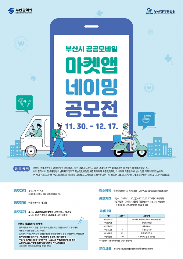 [충청뉴스큐] 부산시가 오는 17일까지 ‘부산시 공공 모바일마켓 앱’ 명칭을 공모한다고 밝혔다.