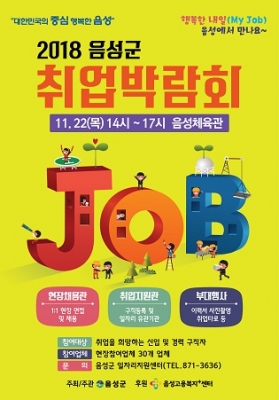 [충청뉴스큐] 구직자에게는 취업의 기회와 일자리 정보를 제공하고 기업체에는 우수한 인재 채용기회를 제공하기 위한 ‘2018 음성군 취업박람회’가 오는 22일 오후 2시부터 5시까지 음성체육관에서 개최된다.