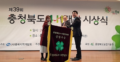 또 함께 진행된 제39회 충청북도4-H대상 시상식에서는 충주시4-H연합회 안승희회장이 영농기술개발부문 봉사상을, 충주시4-H본부 이강수본부장이 공로패를 수상했다.