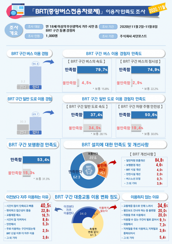 시민 만족도가 가시적으로 높아진 만큼, 현재 시가 추진 중인 서면~충무, 서면~사상 중앙버스전용차로제 사업도 탄력을 받을 것으로 보인다.