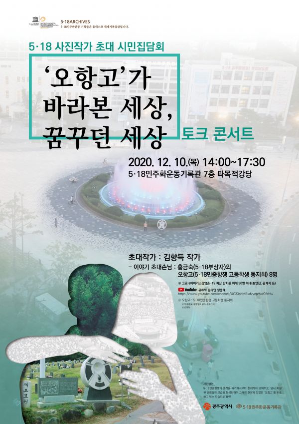 특히 광주항쟁의 흔적을 쫓아 기록으로 남기고 있는 5·18 사진작가 김향득 씨를 초청해 ‘오항고’ 이야기를 토크 콘서트 형식으로 풀어본다.