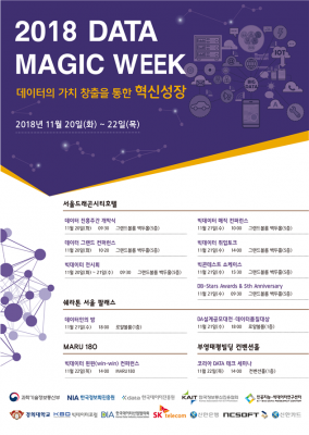 이번 행사는과기정통부가 주최하고, 관련 유관기관들이 공동 주관하며, ‘데이터의 가치창출을 통한 혁신성장!’을 주제로 다양한 컨퍼런스 및 세미나, 전시회, 시상식등 총 11개의 세부행사가 진행된다.