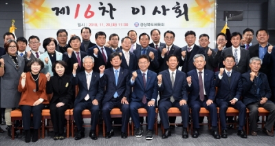 [충청뉴스큐] 경상북도체육회는 20일 도청 회의실에서 도체육회 임원 40여명이 참석한 가운데 ‘제16차 이사회’를 개최했다. 이날 이사회에서는 윤광수 ㈜해광공영 대표이사의 상임부회장 임명동의과 각종 위원회 구성 등을 의결한데 이어 지난 11월 1일자로 대한체육회로부터 인준을 받은 신임 임원 33명에게 임명장을 수여했다.