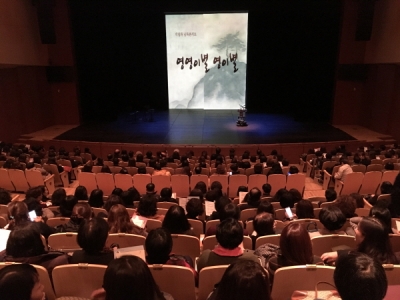 [충청뉴스큐] 인천시교육청 교권보호 및 교원치유지원센터에서는 지난 16일 부평아트센터 해누리극장에서 교원 힐링데이로 교원 400여명이 참석하여. 배우 박정자의 낭독콘서트로 ‘영영 이별 영이별’ 공연을 성황리에 마쳤다고 밝혔다.