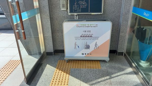 시는 지난 2018년 충주시청에 친환경 우산 빗물제거기를 시범 설치해 운영한 바 있다.