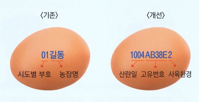 지난 4월 25일부터 축산물 표시기준은 달걀 껍데기에 산란일자 4자리와 생산자 고유번호 5자리를 표시하는 것으로 시행되고 있다.