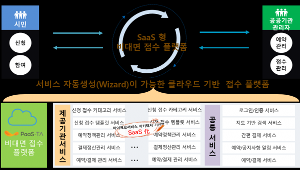 이 과제는 공공 기관이 SaaS 클라우드에 가입함으로써 모집, 공모, 예약 등의 대민서비스를 비대면으로 쉽고 빠르게 제공할 수 있는 시스템에 관한 연구다.