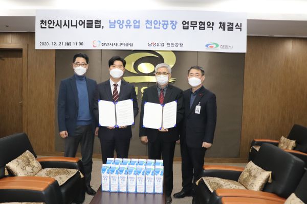 이번 업무협약에 따라 남양유업 천안공장은 2021년부터 시장형 신규사업인 실버카페 남산의 봄에서 사용되는 GT우유제품을 일정량 매월 정기적으로 후원하기로 했다.
