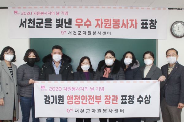 이날 표창장을 전달받은 수상자로는 12년 간 야학을 통해 지역 주민들에게 만학의 꿈을 안겨준 공로를 인정받아 행정안전부 장관 표창을 받은 서천군자원봉사센터 부설 늘푸른배움터 강기원 교사와 함께, 우수자원봉사자로 수상한 서천군자원봉사센터 구창완 센터장 화양면자원봉사거점캠프 권현숙 상담가 소손아손봉사단 장항고 구세라 학생 늘푸른배움터 송미옥 교사 자원봉사자 김은미 씨 서천군자원봉사센터 박영미 교육코디네이터다.