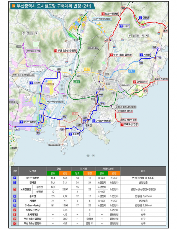 변성완 부산시장 권한대행은 “이번 변경안은 부산지역 도시철도망을 획기적으로 바꾸는 계획”이라며 “효율적이고 편리한 도시철도망을 구현하기 위해 추후 시의회 의견 청취, 국토부 승인신청 등 절차에도 소홀함이 없도록 하겠다”고 전했다.