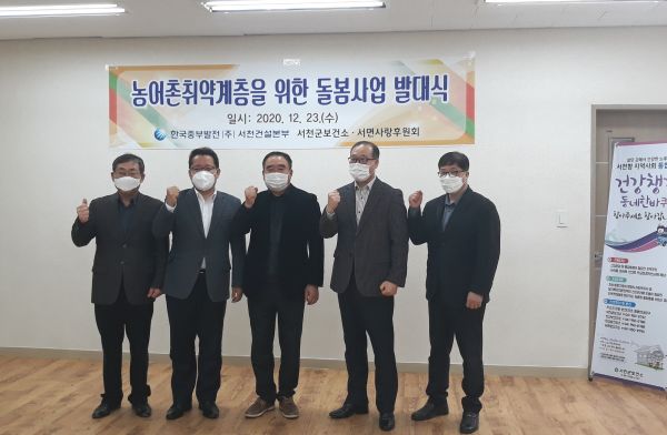 [충청뉴스큐] 서천군보건소가 지난 23일 한국중부발전 서천건설본부, 서면사랑후원회와 함께 코로나19 확산에 따른 취약계층 주민들의 돌봄 공백 최소화와 주민 복지 증진을 위한 협업사업 추진 발대식을 가졌다.