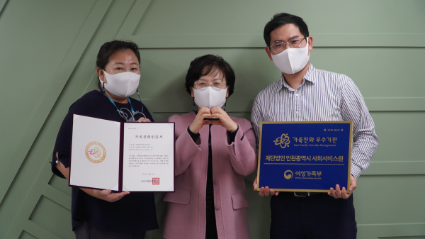 인천시사회서비스원은 올해 처음으로 여성가족부가 인증하는 가족친화제도 우수 운영 기업으로 뽑혔다고 24일 밝혔다.