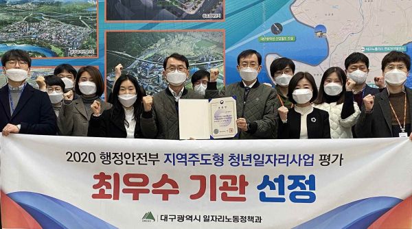 [충청뉴스큐] 대구시는 행정안전부 주관 ‘2020년 지역주도형 청년일자리사업’ 평가 결과 최우수기관으로 선정돼 기관 표창을 수상했다.