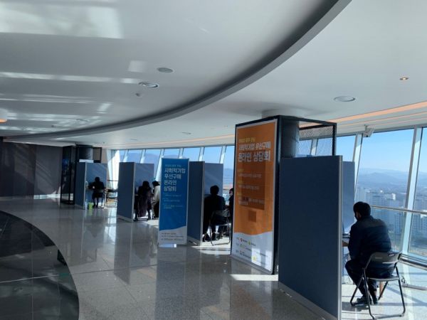 이날 우선구매 온라인 상담회는 한국전력공사, 한국농어촌공사, 한국인터넷진흥원 등 8개 이전기관 구매 담당자는 공동혁신도시 빛가람호수공원 빛가람전망대 5층에서 기관별 부스를 마련해 영상회의 방식으로 광주·전남 25개 사회적기업과 구매 상담을 진행했다.