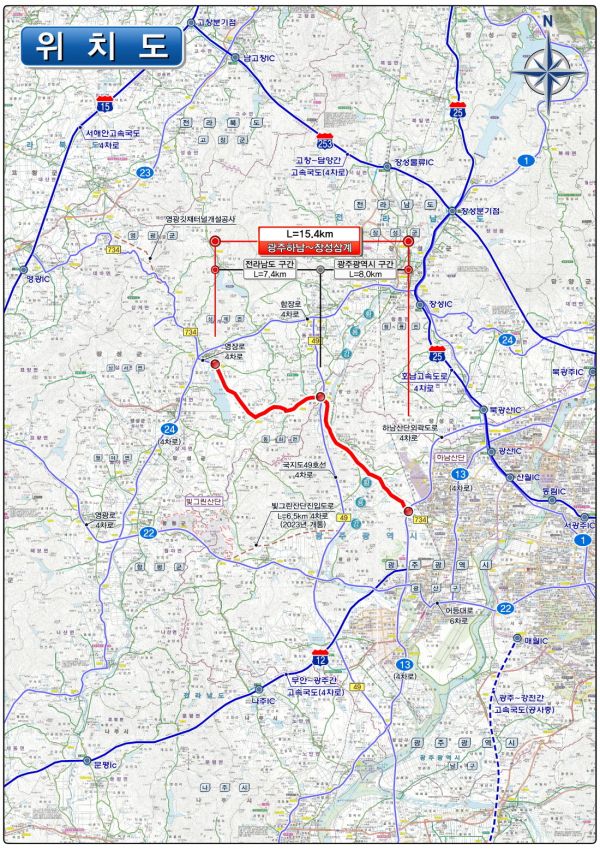 또 사업노선을 중심으로 인근 진곡·하남산단과 광주글로벌모터스가 입주한 빛그린국가산단 그리고 평동 1,2,3차 산단의 물류차량이 인천 등 서해안 주요 수출항에 접근하기 위해서는 서해안고속도로 영광IC를 거쳐야 하는 만큼, 이 사업으로 영광IC로 가는 최단 거리 노선을 확보할 수 있게 돼 물류 교통여건 개선에 따른 광주 전남의 산업경쟁력 강화에도 보탬이 될 전망이다.