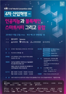 [충청뉴스큐] 부산시와 부산유비쿼터스사물인터넷협회는 22일 오전 9시 30분부터 벡스코 컨벤션홀에서 ‘4차 산업혁명-인공지능과 블록체인, 스마트시티 그리고 융합’을 주제로 "제4회 U-IoT World Convention"을 개최한다고 밝혔다.