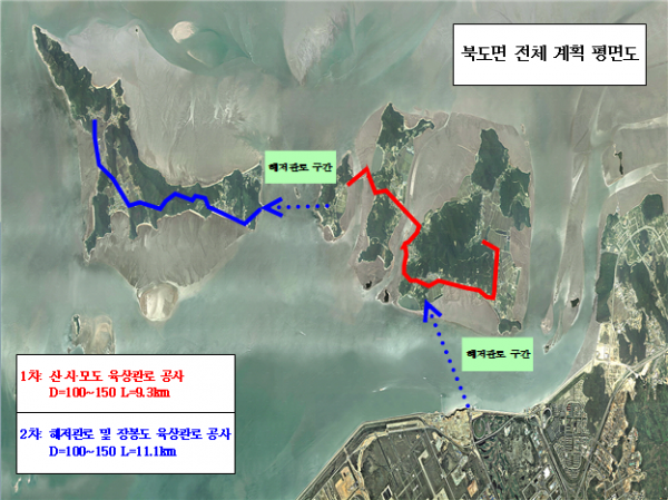 이번에 완료된 1단계 사업은 신도~시도~모도 육상 구간이며 2단계 사업인 장봉도 육상 구간과 해저관로 구간은 2021년 3월 착공해 2022년 9월 완료할 예정이다.