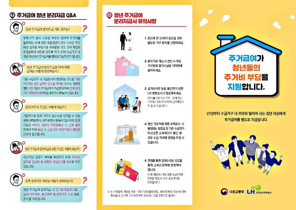 청년 주거급여 분리지급 제도는 실제 부모와 거주지가 달라도 1가구로 편성돼 별도의 임대료를 지원받지 못했던 기존의 제도를 개선하기 위해 신설됐다.