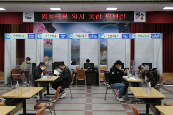 [충청뉴스큐] 충북 영동군이 전국 최초로 코로나19 감염원 완벽 차단을 위한 임시 통합민원실을 본격 가동했다.