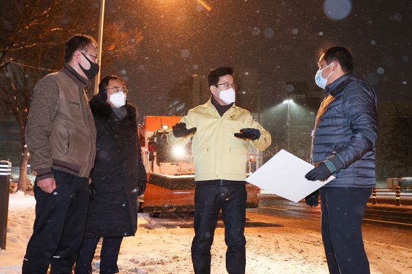허태정 시장은 7일 오전 5시 경성큰마을 네거리에서 진행 중인 제설작업 현장을 찾아 현황을 청취한데 이어 건설관리본부 도로관리소와 재난종합상황실을 방문해 제설 및 상황근무자들을 격려했다.